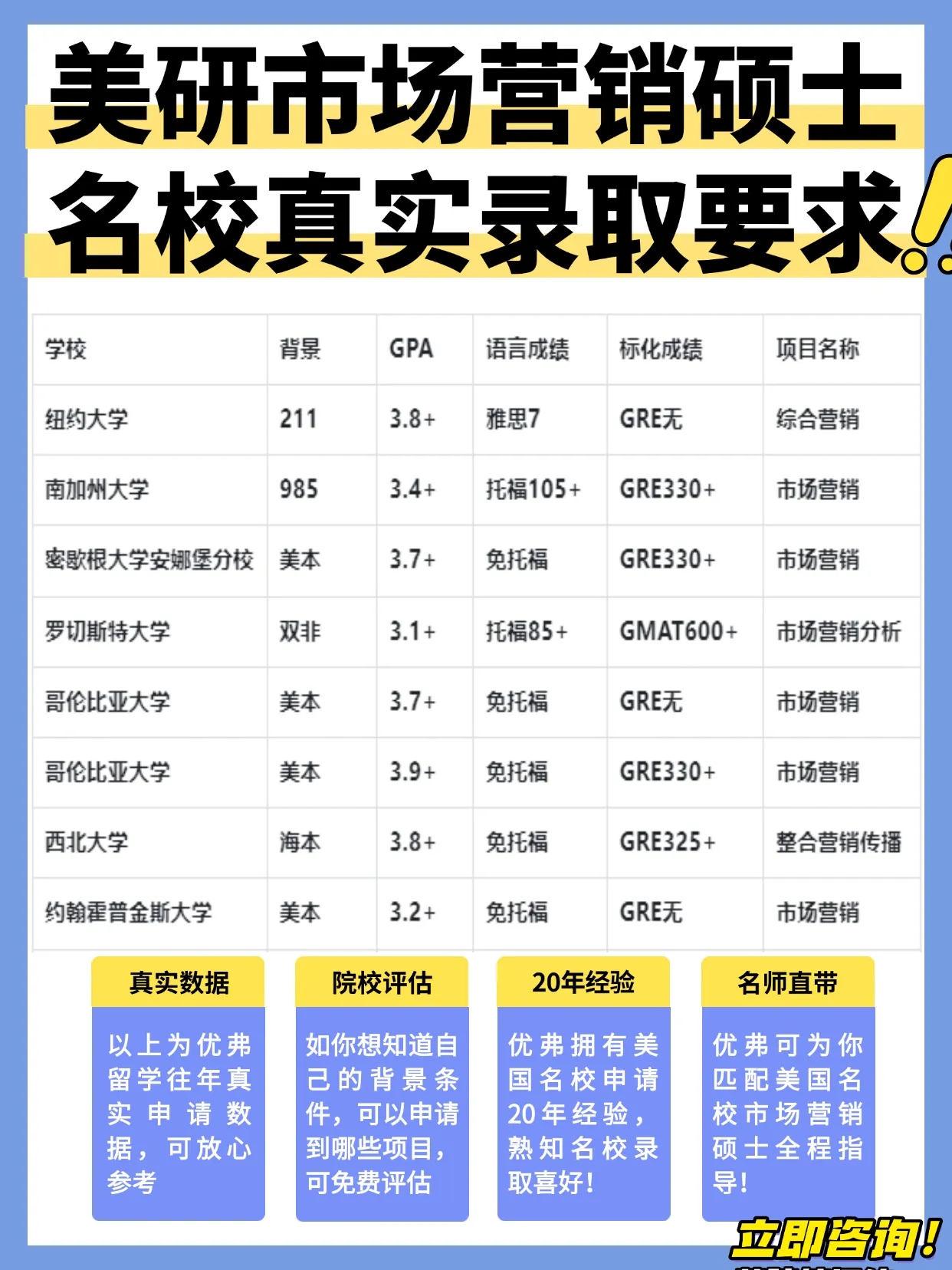 985学霸聚集地,骋笔础3.4+,托福105+,骋搁贰330+,市场营销专业等你征服!