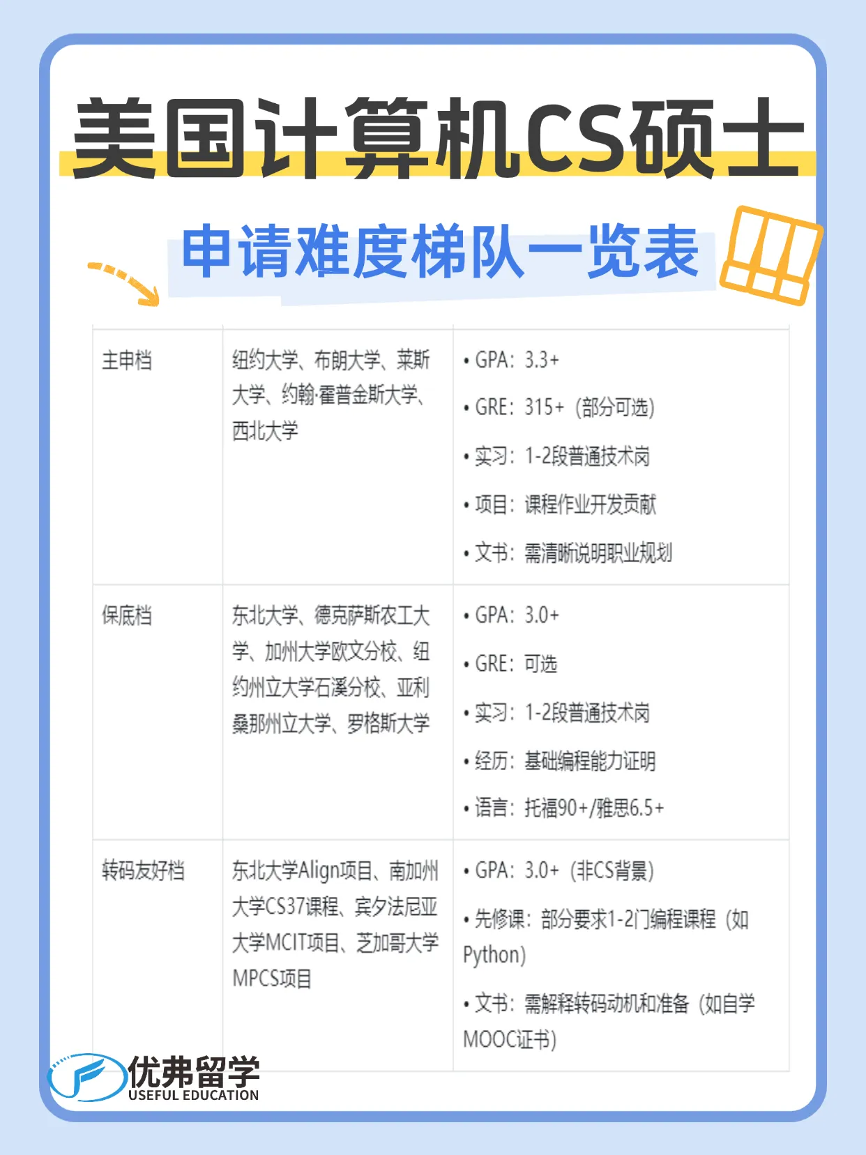 2026申请必看!美国计算机颁厂硕士院校申请难度梯队指南表